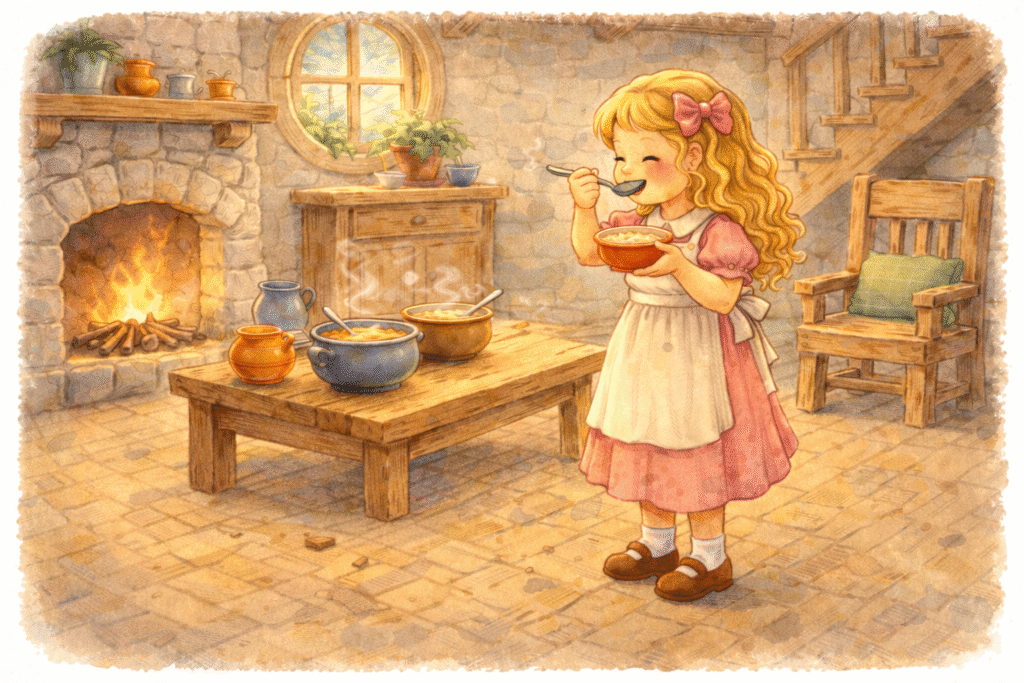 She tasted Papa Bear’s porridge.