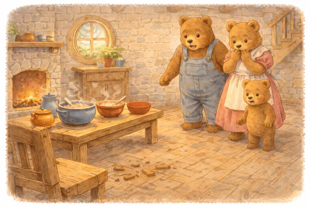 Once upon a time, in a quiet forest, a bear family lived in a cozy little house.